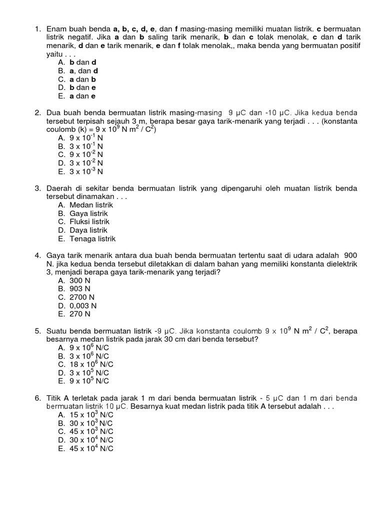 / Kuat Medan Listrik Di Suatu Titik Dalam Medan Listrik X Adalah 105 N/C. Berapa Kuat Medan Sekarang Jika Besar Muatan X Dijadikan 5 Kali Semula Dengan Jarak Dijadikan Dua Kali Semula? : Tugas 2 Fisika Teknik Hasil Pekerjaan Di Email Ke Iyusrusmana